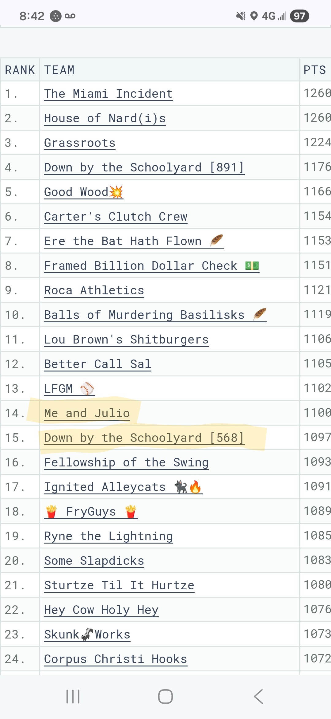 July 15: Start of playoffs, 68 teams eliminated and final roster update